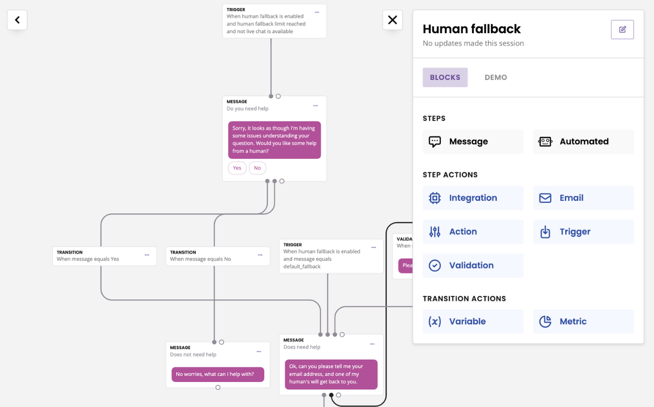 Simplified the canvas by moving the conversation name into the block bank. This gives you more space for some sweet automation buildin'.
