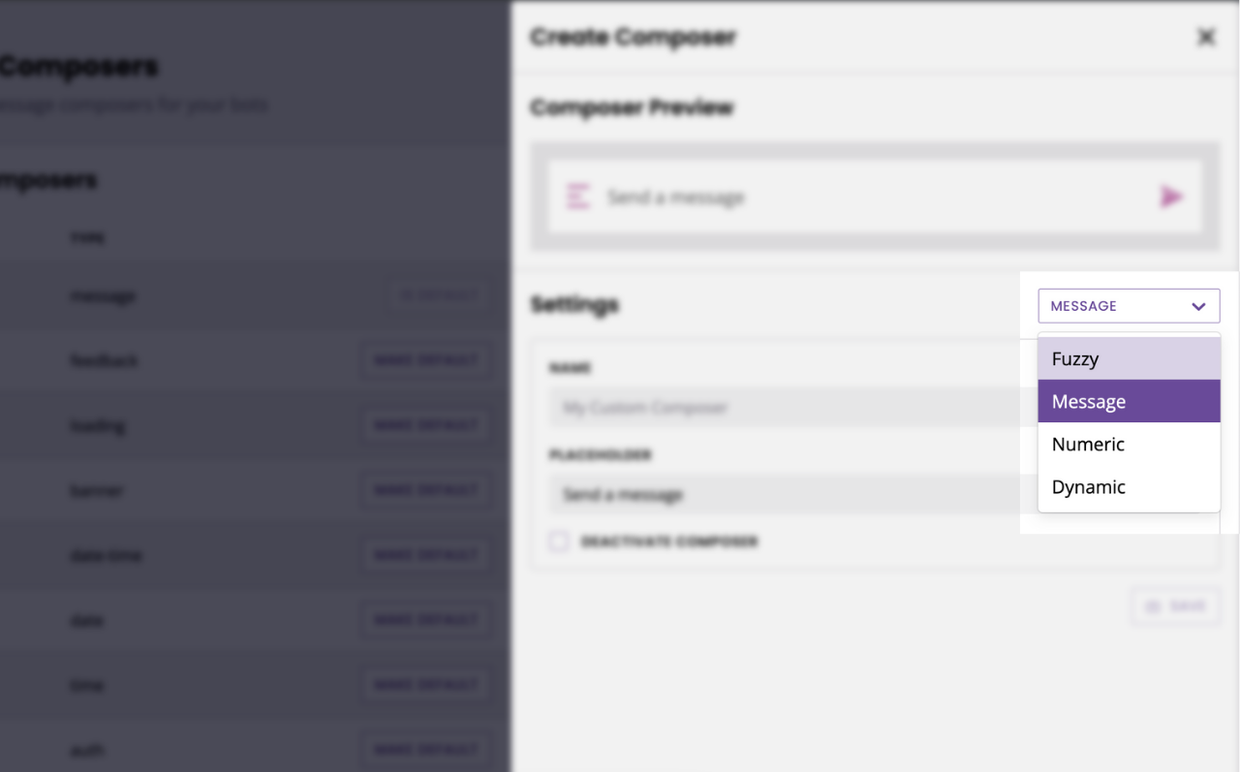 Our platform allows you to create a dynamic version of any of our composers. For this example, we need a fuzzy composer, so using the Add composer… dropdown, select Fuzzy.