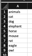 Make sure you change name_of_column to the actual name of your column in your spreadsheet. In our example, we use animals (cell A1).