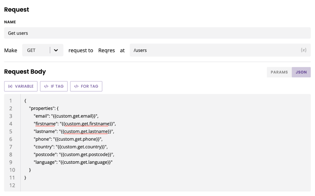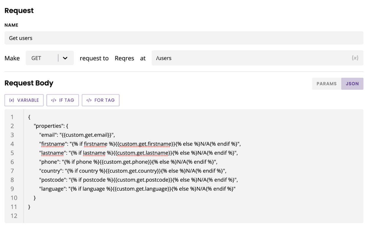 For every field, we're going to enter an if statement. Delete the value (e.g. {{custom.get.last_name}}) from the field.