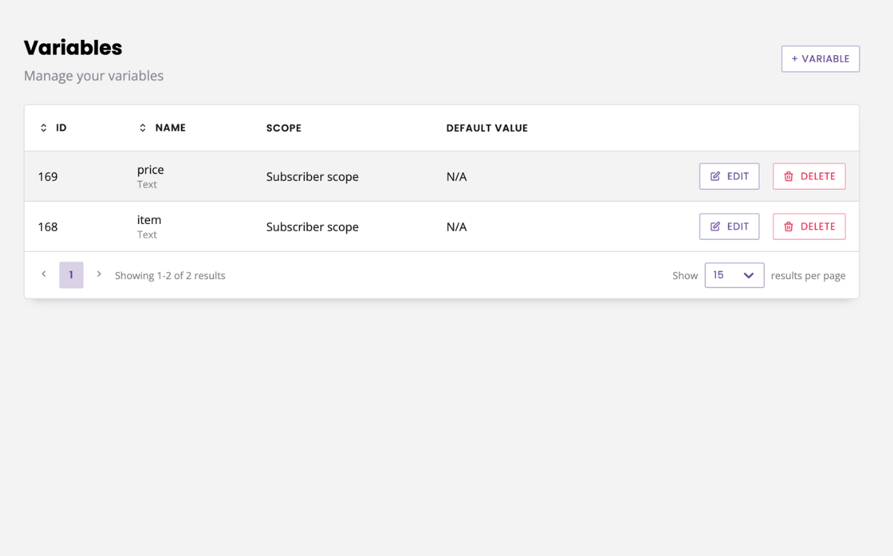 We will use two variables in this use case: one for the item, one for the price of the item.