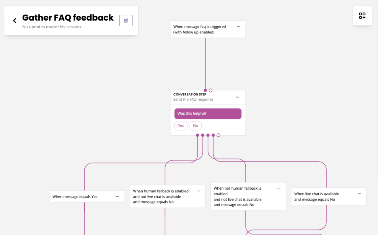 The default follow-up workflow is set up to gather feedback from your chatbot users with a simple yes / no answer.